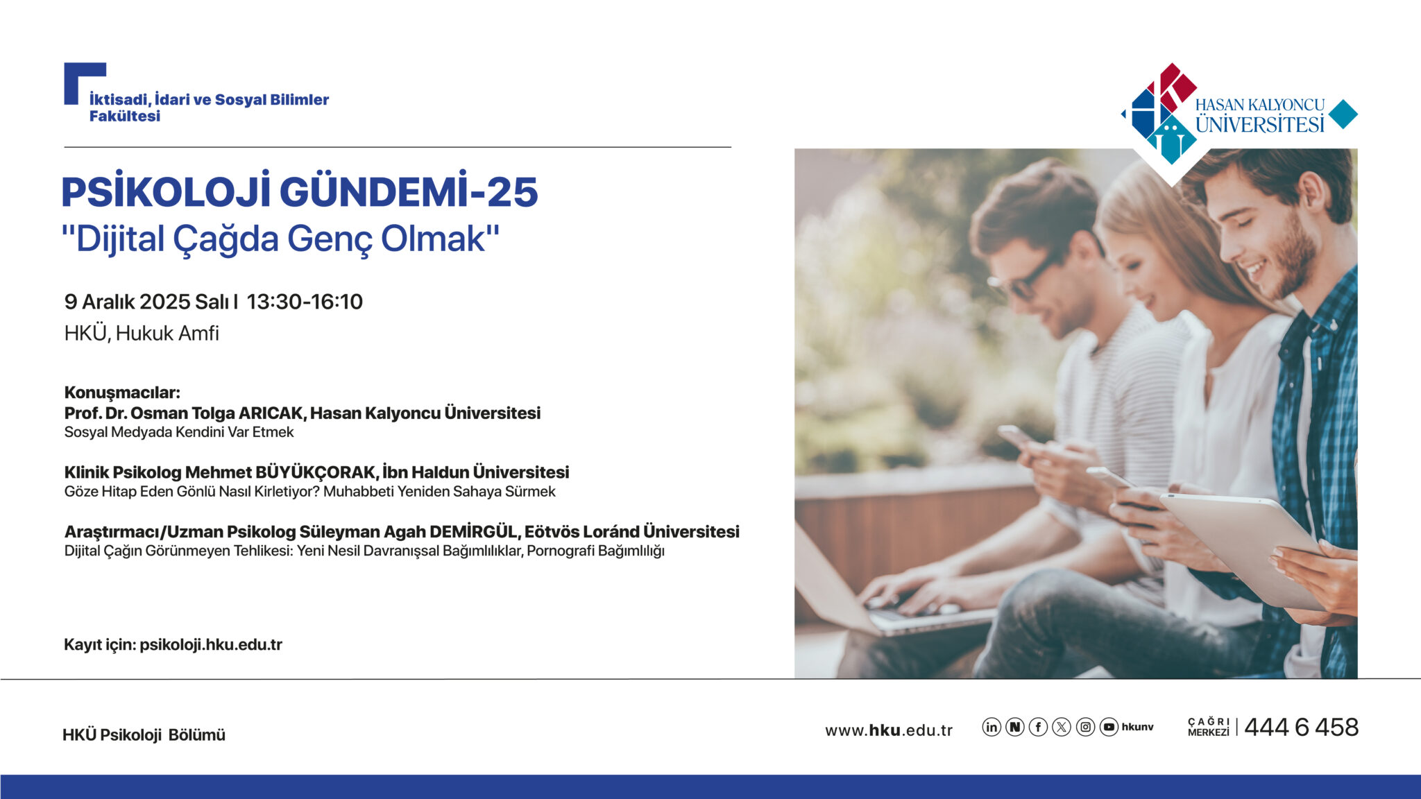 Psikoloji Gündemi-25’e Davet Aralık 3, 2025 Kategori: İlanlar Psikoloji Gündemi-25’e Davet için yorumlar kapalı Psikoloji Gündemi-25’te “Dijital Çağda Genç Olmak” üzerine konuşacağız. Etkinliğimize kayıt olmak için lütfen tıklayınız.